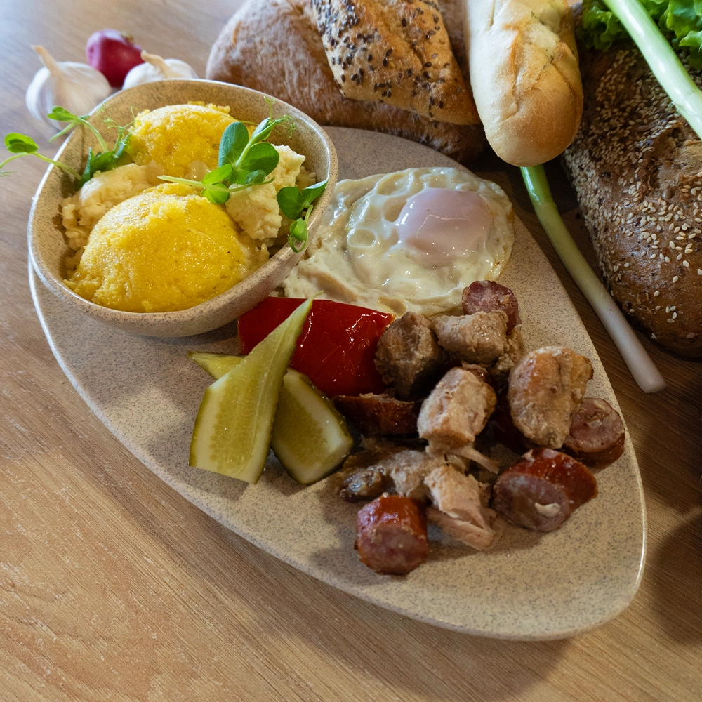 (tochitură, mămăliguță, brânză de burduf, ou ochi, murături) 300g/200g/100g